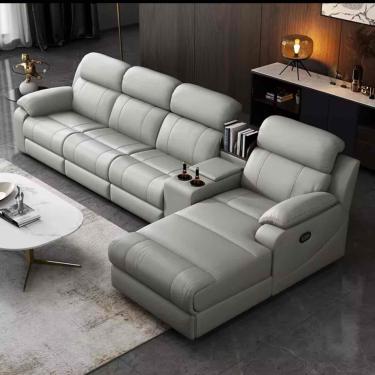 Modern Italian Electric Sofa Set Genuine Leather Multi-Functional Recliner Feature Metal Corner
