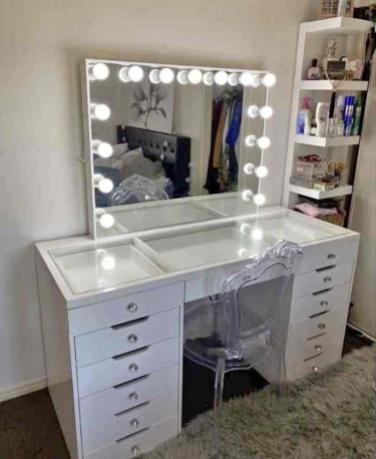 New Makeup Vanity with Mirror, 12 LED Lights, Glass Top, 8 Drawers, Power Outlet and Chair