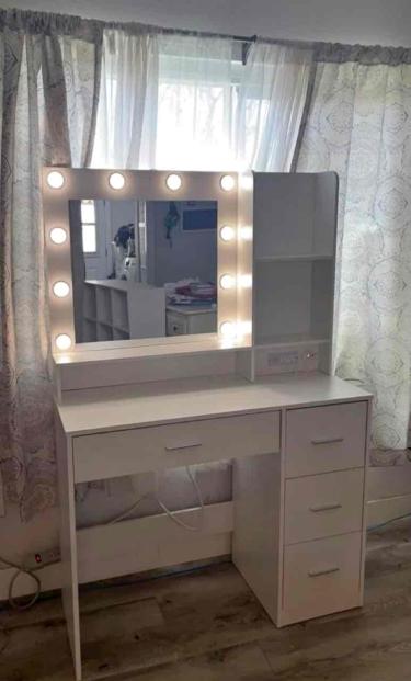 Vanity Desk With Mirror - LED Light With Adjustable Lighting - 9 Drawers