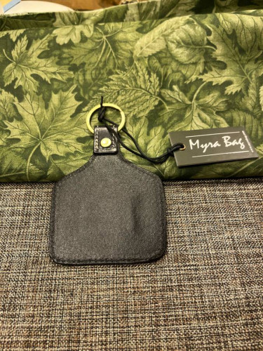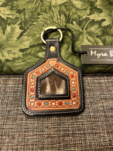 Add some charm to your keys with this Myra Bag keychain featuring a hairon center and a multicolor geometric pattern. This keyfob is made of fur, leather, and metal with metal brass accents, and has a charming message that says "No Place Like Home". The keychain is perfect for both men and women and has a cou...