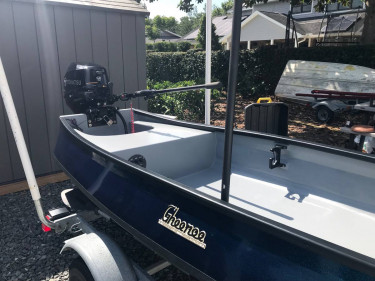 Gheenoe 13’ There was NO wood of any kind used in this boat. only top quality modern materials have been used. I finished the boat about a year and a half ago and it has been put through its paces Transom was rebuilt using Coosa Board composite Casting deck, seat and floor have all been done in Plasc...