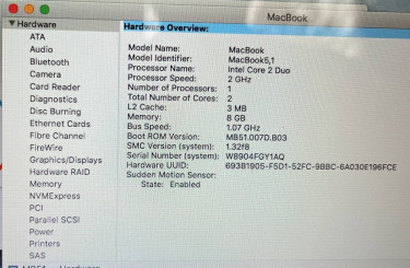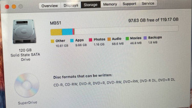 13 in. Mackbook 5.1 Late 2008 2 Ghz Core 2 Duo 8 GB Ram 120 GB SSD hard drive DVD super drive activated copy of Office 2011 Running El Capitan 1616 cycles on the battery notice in the picture of the bottom, the latch for the easy access cover for the battery and hard drive for easy replacement Nic...