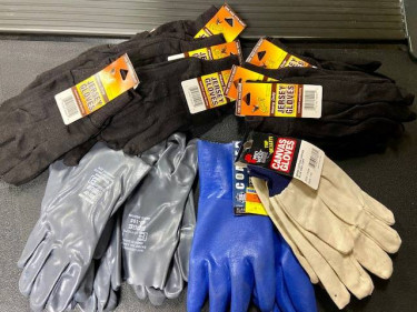 13 pairs! 8 PAIR - Eagles 7 Jersey Gloves for Shop, Yard or Garden. Keep hands clean while handling warehouse materials. 2 PAIR - Midwest Top Quality Canvas Gloves - New with tags gloves. Never been worn and very clean, great for working in the shop or the garden! 2 PAIR - Edmont Edge 40-105 gloves...