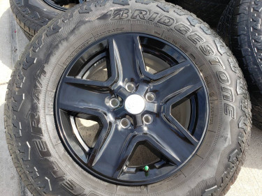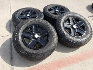(4) 17" Jeep Gladiator (Wrangler) OEM wheels and tires -Rims and tires are both ready to go in excellent condition! -Tires are 245/75/17 Bridgestone Dueler A/T, brand new take offs! (tires alone cost over $800) -We can also buy your old wheels to get the price even lower -We have other new 2022 Gladiato...
