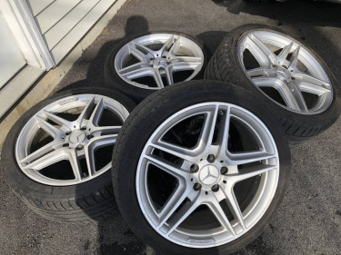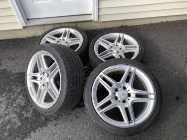 Set of 4 18" AMG OEM factory alloy rims wheels and tires. Came off a W204 C class but will fit other models and years. These will fit the newer W204 C class, W212 E class models, most S and CL class models, and likely others. Genuine Mercedes stamped wheels with MB center caps. They are high quality ori...