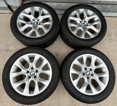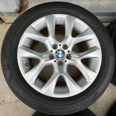 Selling Nice Set of: 19” BMW X5 Sport X6 Factory OEM Wheels Rims Tires 19 inch center caps included. Bolt pattern: 5x120 Wheels are in good condition! Tires: Size/ Brand 255/50/19 255/50r19 Bridgestone All Season Tires Approx. 75% tread. 312-909-9310 Joe
