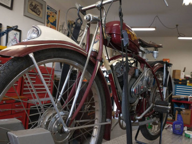 Whizzer put together 50 years ago from all NOS parts. It was then put in the back of an airplane hangar until 3 months ago. It has less than 10 miles on it since it was put together. has a little bit of dust and dirt on it. Paint on the rear fender should probably be resprayed. This has every original Whizzer...