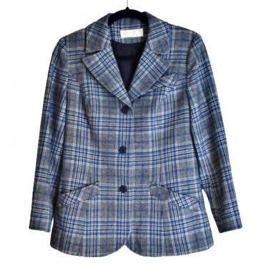 Genuine 1960s 1970s Vintage RARE Pendleton Wool Blue & Grey Plaid Blazer Jacket Coat * Original owner: Odor-free. Non-smoking & Pet-free home. No stains. Dry-cleaned and ready to wear. * MARKED SIZE - Women's 12 Jacket (May fit like a current size 4-6) * Please note MEASUREMENTS: Arm length: 22-1/...