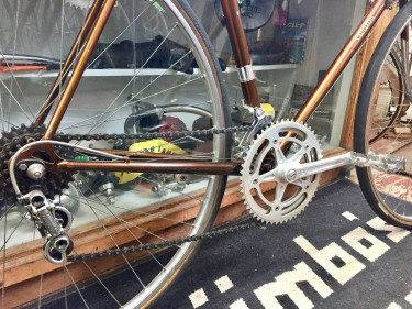 1966 Raleigh Carlton 23 1/2” very rare model in good condition Color- Coffee Brown Seat tube- 23 1/2” center to top Top tube- 22” center to center Handlebar- Gerry Burgess 38cm center to center Stem- Gerry Burgess 95mm Saddle- Brooks Professional Rims- Weinmann 27 1/4inch alloy with dimples Tir...