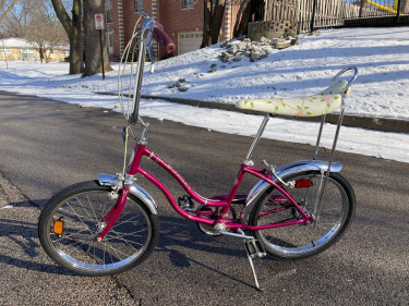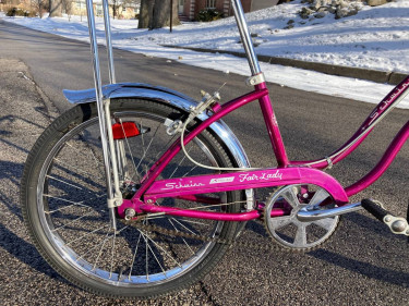 I'm selling my Schwinn Stingray Fairlady bike with the 3 speed Sturmey Archer rear hub. With an HGXXXXX serial number, it was manufactured by Schwinn in Chicago in August of 1971. This bike is in all original condition and is unrestored. Overall the bike is super clean, and in great mechanical shape. The ...