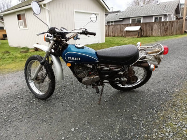 Unmolested, unrestored survivor 1974 Yamaha DT 175A model. Runs great starts every time. 5600 mi, 68 mi since resurrection, everything works, oil injection works perfect. Has the original license plate and 1975 Washington cycle expiration tag. Title in hand. It is a blast to ride, and I have enjoyed the miles...