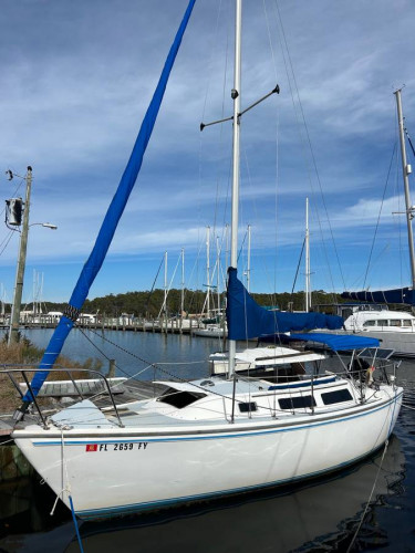 1987 Catalina 25 Sailboat with a Poptop and a swing keel. 2016 Tohatsu 9.9 Outboard Roller furling head sail Bimini 50 watt solar panel Recovered cabin cushions 2 cockpit cushions Custom nautical themed table Dometic head Oversized CQR anchor with chain New Raymarine autopilot All requir...