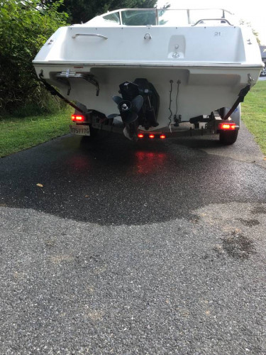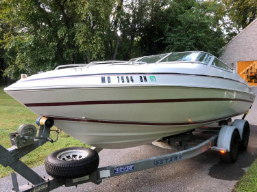 Clear title on boat and trailer. This 21' boat is an excellent low-maintenance family fun boat. I've owned it 10 years and it's always been garage kept. This is a turn-key item ready for tubing, skiing or cruising. The engine is a Ford 5.0 (302 ci) V-8 with 200hp coupled with an OMC outdrive so it runs on reg...