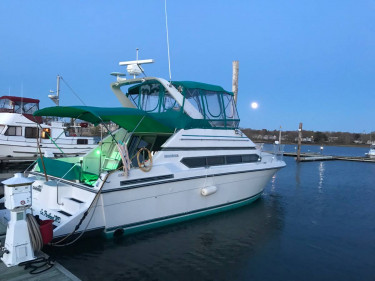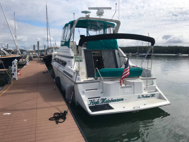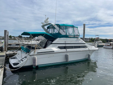 Twin 454 Crusaders w/approx 1100 hrs. Kohler 6.5kw generator. Recent AC units, cutlass bearings, thru hulls, engine basket strainers, starters, water heater, LED lighting, fridge, bridge seat cushions, transom bench seat, custom teak and holly flooring. Refurbished Nibral props. Lots of storage, great live ab...