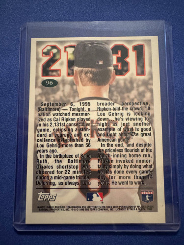 1996 Cal Ripken Jr Topps 2,131 Consecutive Games