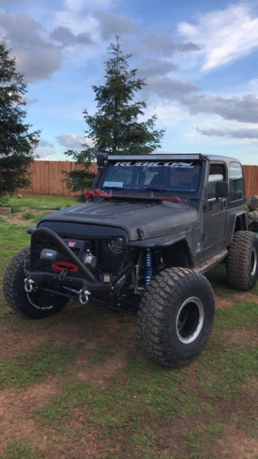 1998 Jeep wrangler tones of work done to it 2016 Jeep rubicon axles 4:88 Yukon gears Detroit locker in the rear E locker in the front .4 linked with fox 2.0 coil overs I have hard top full doors and half doors 35s on true bead lock wheels , inline 6 cylinder engine with 5 speed