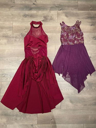These 2 costumes are in EXCELLENT CONDITION and were only worn for a dance recital. They come from a clean, smoke- and pet-free home. Great for dress-up play, ice skating or solo dance competitions, theater performances, Halloween, etc. Adult Medium. Priced individually: The burgundy 1-piece dress by K...