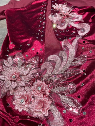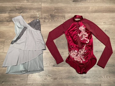 These 2 costumes are in EXCELLENT CONDITION from a clean, smoke- and pet-free home. Made from stretchy fabrics that are great for dress-up play, ice skating or solo dance competitions, theater performances, Halloween, etc. Adult Small. Priced individually: The burgundy long-sleeve bodysuit from DOUBLE P...