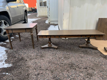 Hi, I have 2 Vintage Matching Formica End Tables and Coffee Table for sale. They are all still in great shape. The tops are made out of Formica but it is very scratch resistant. I am not sure what brand it is or exactly how old they are. The one end table will need new replacement Wing Nuts. It will need all ...