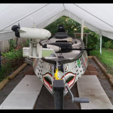 Great boat lots of extras Have own boat dock in backyard if you want to take it out 9.9hp Mercury had an upgrade runs really well the red linners peels right of if you want to put the original seats back on which I have Comes also with gas tank extra fuel lines. Extra brand new prop P52 wrap n...