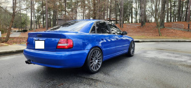 Gorgeous and very Rare and highly desirable 2001 Audi S4 Sedan in Factory Nogaro Blue Pearl Paint with Black Leather interior. Full Stage 3 car with complete paperwork and records. Has RS4 K04 Turbos, Intercoolers, Stage 3 C...