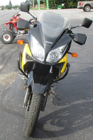 2003 Suzuki DL1000 V Strom Adventure Bike with 27,759 miles. 1000cc / 98 hp fuel injected V-Twin engine, 6 speed transmission, high mount dual exhaust and chain drive. Fully adjustable suspension, hand guards, Givi engine guards, rear trunk and more. This was the Rider Magazine Motorcycle of the year for 2002...