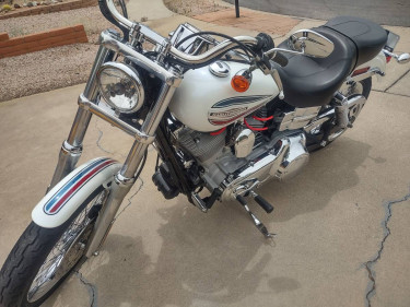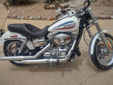 Beautiful example of the limited anniversary edition FXDI35 Super Glide #1344 of only 3500 produced. This bike is flawless, it was just tuned and is ready to ride. It's a one (1) owner bike senior owned since new. It includes quick release windshield, saddle bags, backrest with luggage rack and heated grips. ...