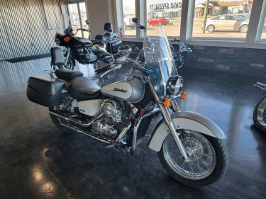 NEW YEARS SPECIAL!! CHECK OUT THIS SUPER NICE LOCALLY OWNED 2006 HONDA SHADOW 750CC WITH 35K MILES. HARD LEATHER LYKE LOCKING SADDLE BAGS, VANCE N HINES EXHAUST, BLUE TOOTH AUDIO WITH AUX INPUT, SKULL AIR CLEANER COVER, DETACHABLE WINDSHIELD. THIS IN A NICE AND VERY CLEAN BIKE FOR THE YEAR!! BACK TIRE IS IN G...
