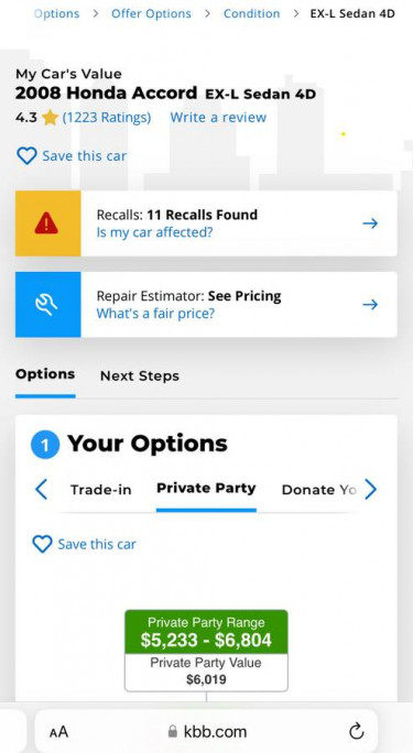 TITLE:: MUST SELL TODAY! 2008 HONDA ACCORD EX-L RUNS GREAT ASKING $4200