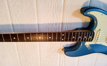 60's stratocaster made in Mexico 2010. This guitar is in beautiful condition with 1 little rub on the edge of the headstock ( I can't see it but can feel it.) and a small ding from the guitar stand on the side below the middle tone knobs. No chips in paint with bare wood showing. Look at the pictures. 100% o...