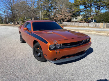 2011 Dodge Challenger for sale. Runs great with only 100k miles, and only 2 owners!! 3.6 V6 engine (Not A V8) fully customized and modified to look and run like a V8!! Minor cosmetics but overall great condition!! Bright orange last of its kind perfect muscle car to star...