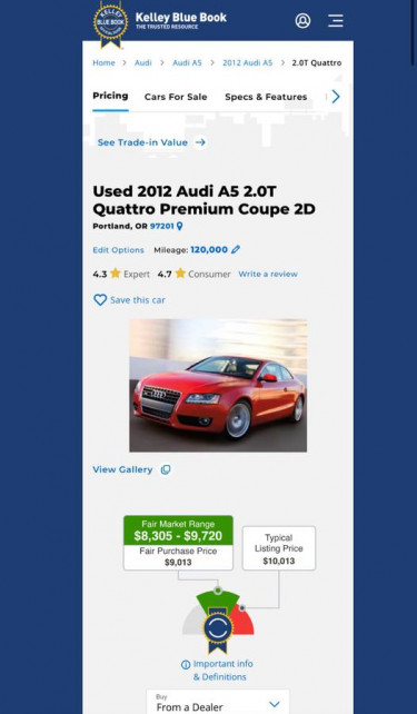 2012 AUDI A5 Premium 2.0 Turbo Quattro AWD! Winter ready. Low miles only 120k. Priced to sell $5,950 Today only! LED daytime running lights, xenon headlights, led taillights. Beautiful interior, no fault codes or warning lights on. Minor front end cosmetic damage. Doesn’t affect the drivability or anythin...