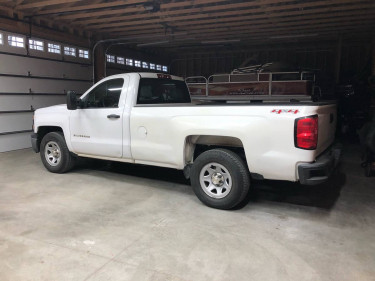 2014 Silverado regular cab with an 8 foot bed. V-6 engine with 4-wheel drive, rust-free Georgia truck. Mirrors replaced with over-sized extendable ones. Back-up camera added, also added trailer brake controller. Blue-tooth unit for phone. It does have a couple of mi...