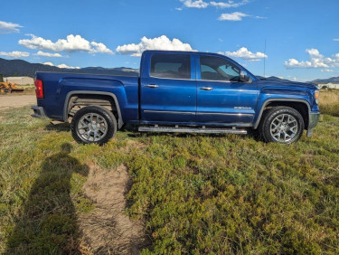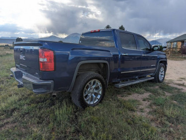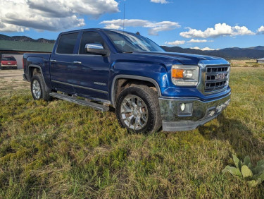 $21,500 o.b.o. GMC features: 2014 GMC Sierra 1500 SLT 5.3 V8 6speed automatic 120000 miles 4X4 Crew cab Cobalt blue exterior Black leather interior Spray-in bed liner Trailering package with 2" receiver hitch Running boards Rear bumper steps After-market rear leaf spring enhancement kit (for...