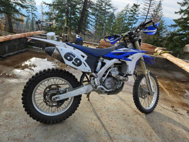 2014 WR 450F kept in perfect condition. Electric start. 1 owner. Me. And I'm old. Only selling because I'm buying a new bike. Test rides welcome if you bring your helmet. If you scratch it = You bought it. Incredible throttle response. Best wheelie bike I've ever riden. No disappointments. Regular mainten...