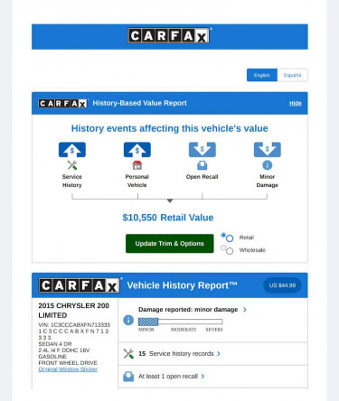 TITLE:: Gas Saver Money Maker 2015 Chrysler 200 Limited 4-Cyl