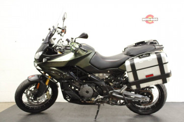 This is one bad a$$ adventure bike to compete with all the rest of the big dog bikes out there. Aprilia’s Caponord Rally 1200 ABS is wrapped around its 1197cc, 90-degree, V-twin motor that produces 125 horsepower. The Caponord Rally has three tiers of traction control and three power modes, as well as ABS tha...