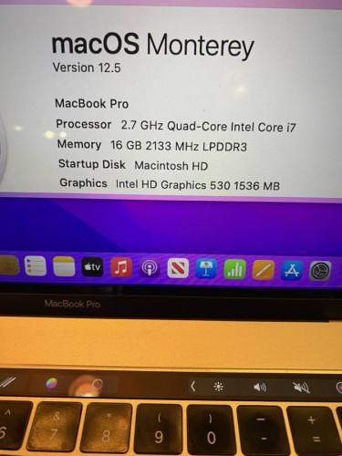 500 GB Hard Drive, 16 gigs memory. Wiped clean and ready for you to start in fresh. Large 15" screen great for watching movies, TV, etc. Extremely clean, no scratches, like new, in excellent condition. 5' long charging cord. Processor: 2.7 GHz Quad-Core Intel Core i7 Memory: 16 GB 2133 MHZ LPDDR3 ...