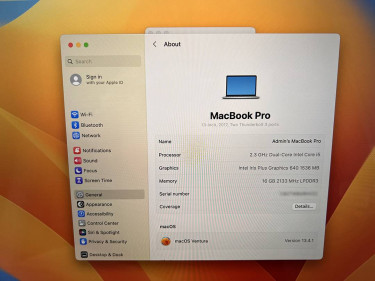 2017 13" MacBook Pro with 16 GB of RAM, 256 SSD, Intel Iris Plus Graphics 640, and a 2.3 GHz Dual-Core i5 processor. Gently used and in beautiful condition. Updated to macOS Ventura. The screen is nice and clean with no Anti-Reflection Coating issues. No major dents or scratches. Very, Very clean. It's fast a...