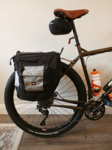 Surly Ogre, XL (22 inch, 56cm) steel frame bike packing/touring/commuting 3 x 10 speed bicycle with dynamo lights, panniers, fork and bar bags, $1800.00. Frame: Surly 4130 Chromoly frame, Natch tubing, double-butted main triangle Fork: Surly 4130 Chromoly Natch tubing, double-butted tapered fork blades S...