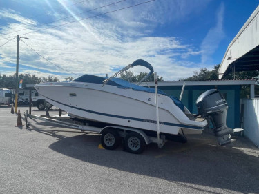 2018 Four Winns HD 240 With Yamaha 250 hp This sport boat has only 65 original hours on it and an aluminum double axle trailer. The boat has an enclosed restroom, a full canvas cover, a stainless steel propeller, a whale tail hydrofoil, a stabilizer, and more. She is 24‘4“ long 55 gallon fuel capacity and o...