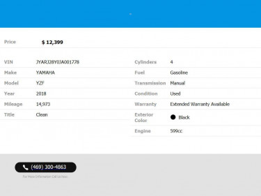 2018 Yamaha YZF R6 R 6 R-6 ABS for $255/mo a month! 14,973 mi. - Manual - Sport Bike - 4 Cyl - - VIN# JYARJ28Y0JA001778 - STK# 001778 Texas Strong Powersports Call or Text (469) 306-1663 Address: 1510 Randolph Street, Suite 304, Carrollton, TX...