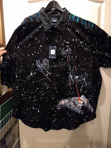 Star Wars Fans, take a look at the Robert Graham The Falcon Sport Shirt in Black. This Robert Graham The Falcon Sport Shirt is inspired by Star Warsª. The Robert Graham shirt features the Millennium Falcon's iconic jump to lightspeed. Contrast Lurex lasers shoot from TIE Fighters while gemstone crystals spark...