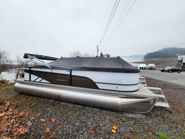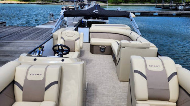 DEMO/RENTAL BOAT VERY LOW HOURS! 2023 Crest Classic LX 220 L Pontoon Boat Exterior Color: White w/ Caribou Accent Interior: Tan Marine Grade Vinyl w/ SeaGrass Tan Blended Tweed Flooring STD Performance Option This boat includes: Tilt Steering Wheel, Docking Lights, Mid Back Helm Seat, Mid Ship 3 D...