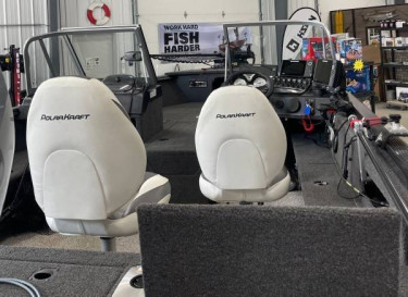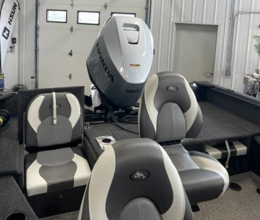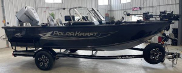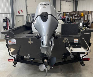 2023 PolarKraft Frontier 179 WT Jump with Honda 150hp four stroke. Charcoal with raised graphics. Walk through windshield, jump seats, mooring cover, centric seating, extra fuel pick-up for kicker engine, upgraded 25" transom, boarding platform, ski tow bar, high pressure washdown kit, hydraulic steering wi...