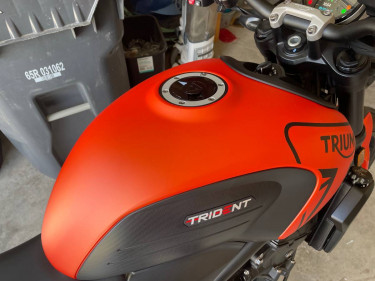 2023 Triumph Trident 660 in Baja Orange Under 1200 miles, might go up a few. Garage kept with a few mods: -OEM Triumph bar-end mirrors -Evotech adjustable flip-away clutch and brake levers -Rear stand spools -Scorpion dark smoke screen -Radiator grill cover Otherwise stock. Dealer 500 mile mainte...