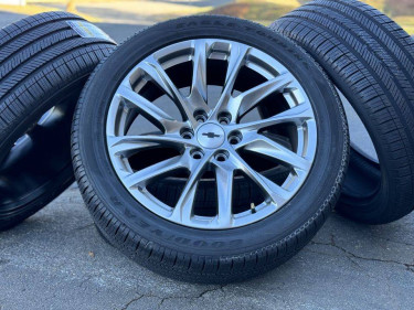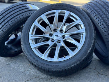 Brand new wheels / tires set of all 4 aluminum alloy 22x9 +24 mm offset 6 lug 6x5.5 inch ( 6x139.7 mm ) These are aftermarket silver rims that fit well for GM trucks and SUV like Cadillac Escalade Platinum Sport GMC Sierra Yukon Denali Chevrolet Tahoe Silverado Suburban Tires are brand new Goodyear ...