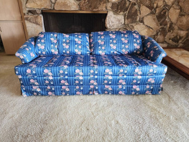 in excellent condition the frames are vintage very solid very comfortable quite heavy they were reupholstered (1990s?) and the fabric is perfect. If you like flowers. there are 2 exactly the same $150 each or both for $200 72 wide, 31 deep seat is 17 high, back is 26 high PLEASE TEXT M...