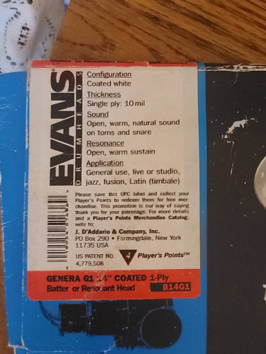 This is a lot of 5 vintage Evans drum heads. This includes: 14" coated 1 ply....14" coated 2 ply......12" glass 2 ply.....13" glass 2 ply....13" glass 2 ply. All 5 drum heads were used on vintage Ludwig drums (drums not available) by a local drummer in a band before 2005. The heads are in varying conditio...