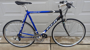 61cm Fuji 21 spd aluminum frame, 700x28c, flat bar, new rebuild with: New wires and cable housing throughout, New chain, saddle, flat bar, twist shifters and handlebar grips. New pedals, new brake pads. This was a drop bar ride that needed a little TLC and a flat bar conversion. Rims are true, tires ar...
